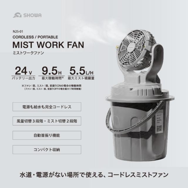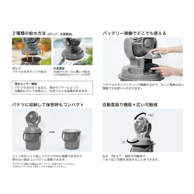 ■稼働時間: 約5.5~9.5時間(ファン:弱 ミスト:弱 首振りOFFの場合最大17時間稼働)